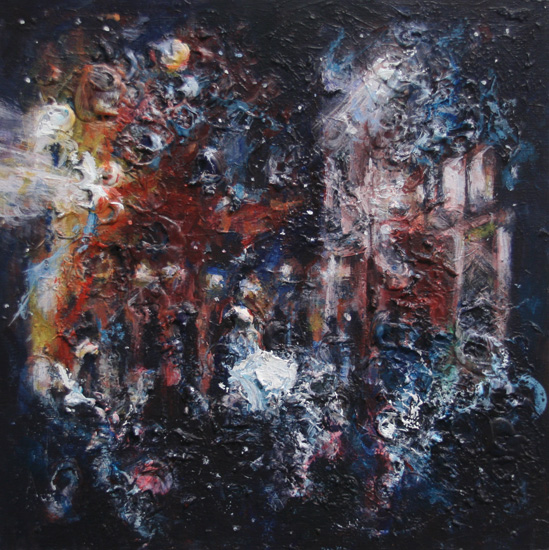 | Cosmos and Anarchy: London 1, acrylic on wood, 12 x 12",
