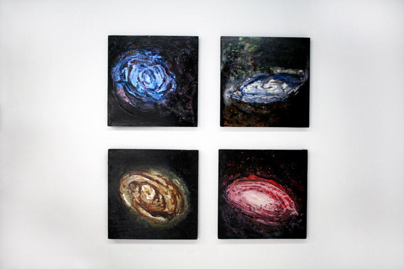 | Deep Field: Spiral Galaxy Installation, acrylic on wood, four paintings - 2' x 2' (available) Return to Painting Menu | Return to Deep Field Menu | Artist Statement |