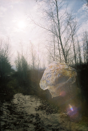 | Plastic Paintings Installations: Hanlan's Point 16, acrylic in plastic cling wrap sculpture, photograph of installation, 2007. Return to Installation Menu | Return to Hanlan's Point Installation Menu | Artist Statement |