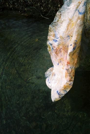 | Plastic Paintings Installations: Hanlan's Point 19, acrylic in plastic cling wrap sculpture, photograph of installation, 2007. Return to Installation Menu | Return to Hanlan's Point Installation Menu | Artist Statement |