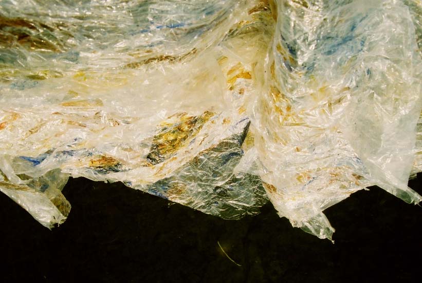 | Plastic Paintings: Hanlan's Point 4, Toronto Island, acrylic in plastic cling wrap sculpture, photograph of installation, 2007. Return to Installation Menu | Return to Hanlan's Point Installation Menu | Artist Statement |