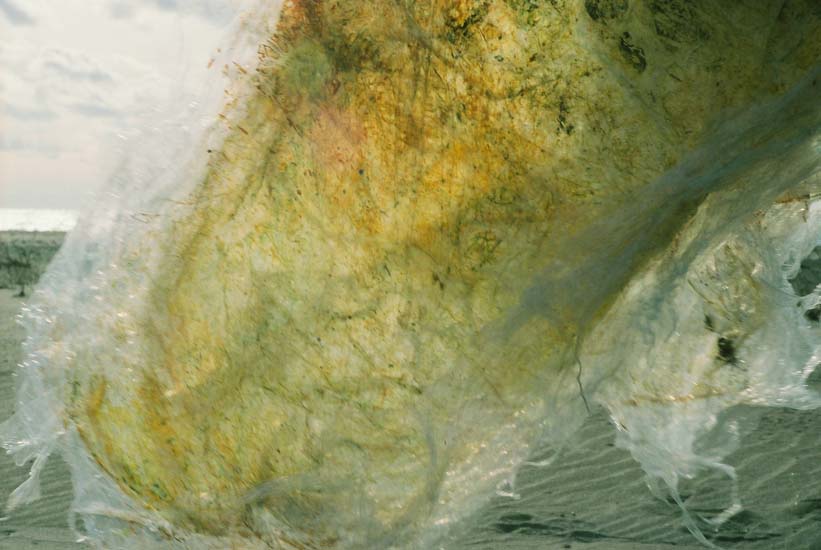 | Plastic Paintings: Hanlan's Point 9, Toronto Island, acrylic in plastic cling wrap sculpture, photograph of installation, 2007. Return to Installation Menu | Return to Hanlan's Point Installation Menu | Artist Statement |
