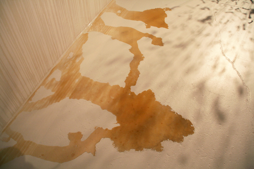 | Detail of Gareth Bate's Colony Collapse honey installation pooling on the floor. Indicator exhibition: photo: Gareth Bate. Return to Indicator Exhibition | Return to Installations Menu | Artist Statement | Press |