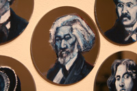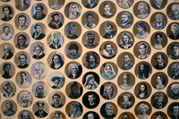 Gareth Bate’s Jewel Net of Indra is an ongoing large-scale installation that will take several years to complete. It is a cosmology representing the interconnectedness of humanity. The starting point is a Mahayana Buddhist metaphor of an infinite net of jewels, each representing an individual. Every jewel contains a reflection of all others. The installation will attempt to represent the totality of lives lived and the historical connections between them. The images below represent the 325 people of Phase 1 which were exhibited at Toronto's Gladstone Hotel. Gareth has now painted over 1900 people. His ultimate goal is 6765. Read Artist Statement and List of Names... |