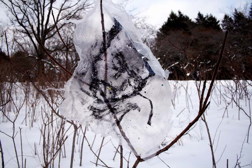 | Plastic Paintings: Self-Portraits Installation in High Park, Toronto, acrylic & ink on plastic tarp, Oct. 07 - Feb 08. Return to Installation Menu | Return to Self-Portraits Menu | Artist Statement |