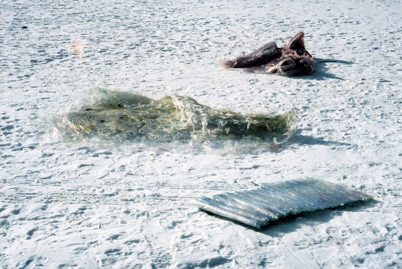 Detail: Plastic Painting: Snow Installations: Grange Park, Toronto, acrylic paint in plastic cling wrap over, 2007.