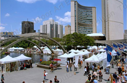 TORONTO, ON – Preview the work of this year's 500 exhibitors! A catalogue featuring work of each of the selected artists is now available on our website at www.torontooutdoorart.org. Browse the artist catalogue by media category, booth section, or search for your favourite artists by last name. More than 500 of the very best contemporary artists working today will participate in the 2008 Toronto Outdoor Art Exhibition. Participating artists will exhibit in 14 different categories including ceramics, computergenerated, drawing, fibre, glass, jewellery, metal, mixed media, painting, photography, printmaking, sculpture, watercolour and wood. Cast your vote for the PRIME Gallery People's Choice Award! Three awards of $1000 each will be awarded to your favourite artists exhibiting on Nathan Phillips Square. The polling station is located at the TOAE Information Booth in front of the entrance to City Hall. Voting ends at 3pm on Sunday, July 13th. Media Enquiries: - 30 - |