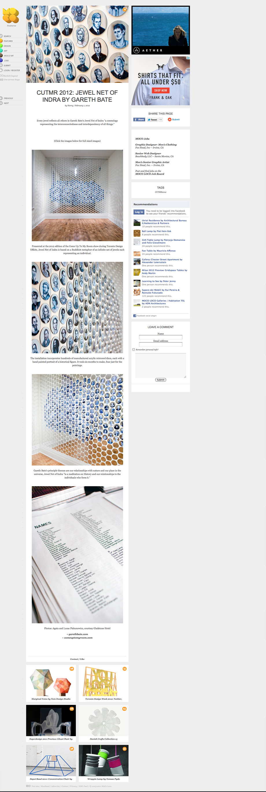 Presented at the 2012 edition of the Come Up To My Room show during Toronto Design Offsite, Jewel Net of Indra is based on a Buddhist metaphor of an infinite net of jewels each representing an individual.