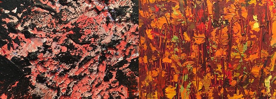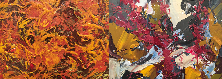 All of these paintings use thick texture and knife effects. In acrylic you have to use mediums mixed with the paint to do this. There’s also mediums to thicken oil paint. But which ones? Paintings by Gareth Bate.