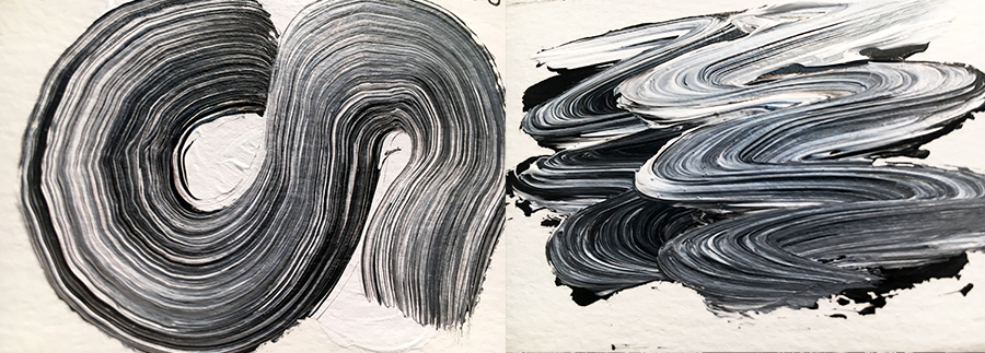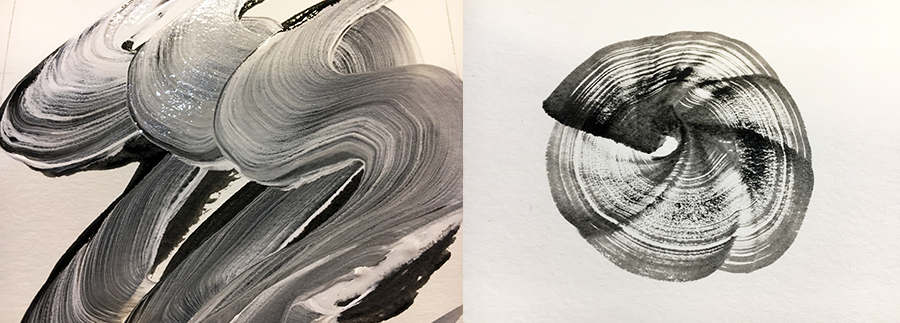 Above are some examples of the black and white brushstrokes charts you'll be doing in this course. The top ones are "wet on wet", the middle ones are "washes" and the bottom ones are "blending".