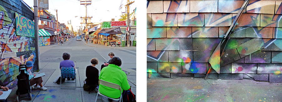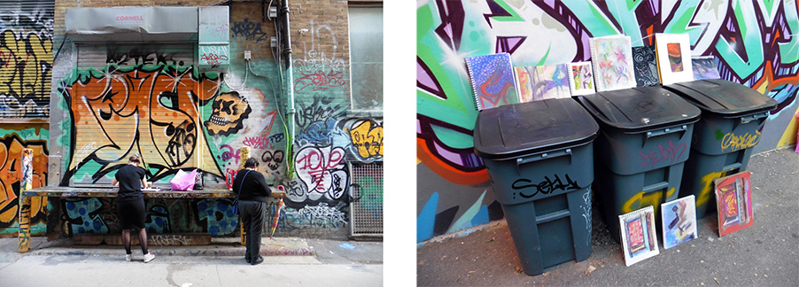 Grafitti Alley. Photo: Gareth Bate. Drawings by Christine Dart, Angelique Davies, Arlene Lerer.
