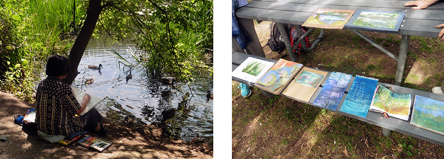 What do we do if it rains? I have carefully chosen locations that allow for the possibility of either going under a shelter or going indoors. Bring a small umbrella just in case we need to walk. You’ll need a few artist markers in case we have to go inside. Just so that we aren’t making that place messy. I'm pretty lucky, I've done this class for 3 years and it's only rained once so far.