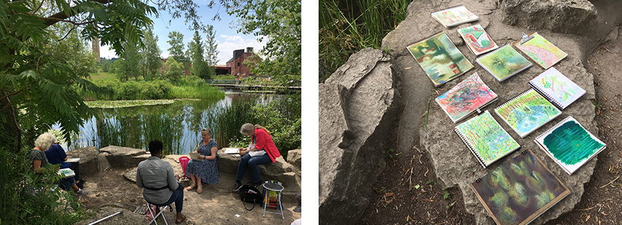 Grenadier Pond in High Park and Evergreen Brick Works. Drawings by Paul Goodram, Andrea Yermy. Photo: Gareth Bate.