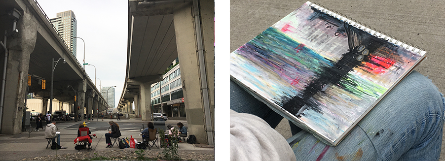 Harbourfront condos and Gardner Expressway. Drawings by Ayfer Samancioglu, Sudeshna Maitra, Janet Hope and David Barron. Photos: Gareth Bate.